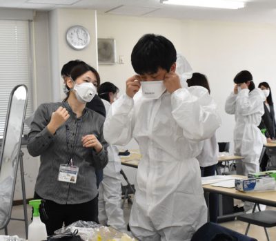 防護服着脱や感染対策確認 県、軽症者向け施設で研修