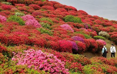 2020/04/22懐かしシリーズツツジようやく花ざかり 日向市の日向迎洋園は開花が遅れて、今やっと花盛り。ツツジ祭(11~19日)を1週間延ばして26日の日曜日まで続けることになり、楽しい行事を繰り広げる。 迎洋園は6万6000平方メートルの全山に植えたツ...