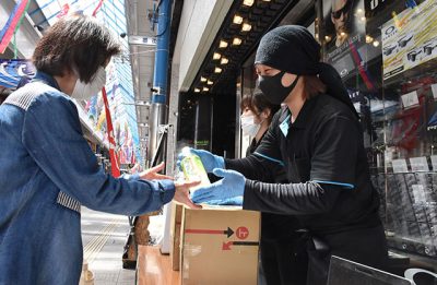 ニシタチ 終息願い「消毒液」 飲食店が無料配布