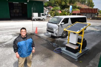 太陽光で発電、容易に設置 フォーカム(小林市)、移動式の車両消毒ゲート