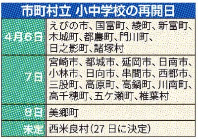 2020/03/27県内一般ニュース県は26日、新型コロナウイルス感染症対策本部会議を開き、2日から臨時休校としている県立学校(高校、特別支援、中等教育学校)について、4月1日から部活動を含めた教育活動の再開を決めた。始業式は6日から順次行う予定。また、休館や閉鎖中の県立図...