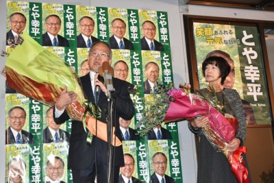 十屋さん静かな勝利 異例の選挙戦万歳も自粛