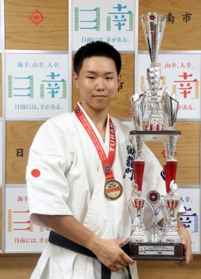極真空手世界王者に 日南の八代さん、カザフスタンで快挙