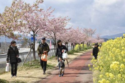 2020/02/22きょうの出来事延岡市の早春を彩る「延岡花物語このはなウォーク」(実行委主催)は22日、同市の五ケ瀬川河川敷周辺で始まった。市内外から多くの行楽客が訪れ、堤防に並び咲く河津桜と菜の花などを楽しんだ。24日までステージイベントなど、多彩な企画がある。 ...