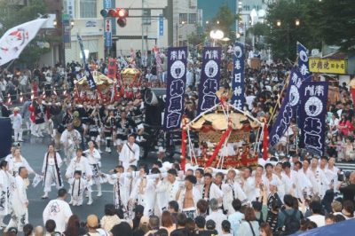 街に熱気「出会い神輿」練り歩く 延岡市で「まつりのべおか」