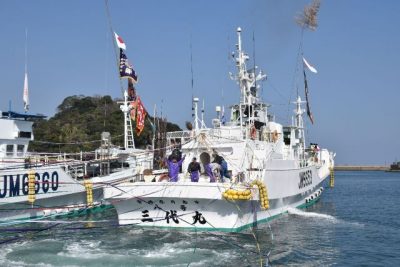航海安全と豊漁祈る 日南、カツオ一本釣り漁船続々出港