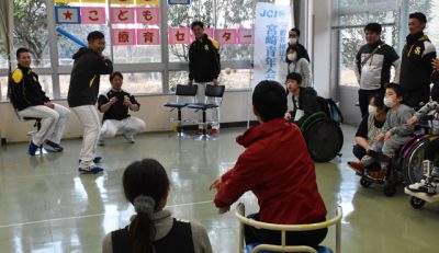 2020/02/05スポーツnow宮崎市で春季キャンプ中の福岡ソフトバンクホークスの選手11人は4日、宮崎市清武町・県立こども療育センターと同市・宮崎西地区交流センターを訪れ、子どもたちと交流を深めた。 同市・宮崎青年会議所主催の交流事業。中村晃、甲斐拓也、高橋礼...