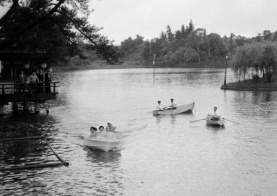 【懐かしの昭和】石山観音池にモーターボート(昭和38年)