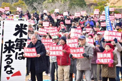 2020/01/19県内一般ニュース日米共同訓練に反対する集会が18日、えびの市国際交流センター前広場であり、県内外の社民党や労働組合、市民団体の関係者ら約850人(主催者発表)が参加した=写真。 本県、鹿児島県の社民党県連や労組会議などでつくる「日米共同訓練反対宮...