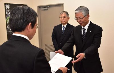 2020/01/09きょうの出来事九州財務局は9日、宮崎都城信用金庫(宮崎市、落合真一理事長)と南郷信用金庫(日南市、阿部政廣理事長)に合併認可書を交付した。両信金は20日から「宮崎第一信用金庫」として営業を始める。 宮崎財務事務所で交付式があり、宮浦裕司所長が落...