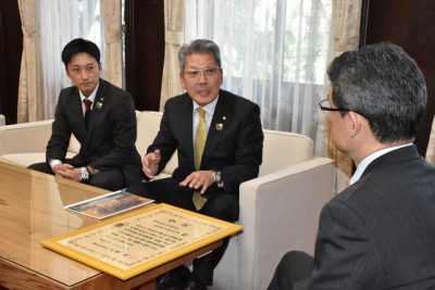 2020/01/09県内一般ニュース農林水産物の輸出で顕著な実績を上げた企業に贈られる「輸出に取り組む優良事業者表彰」で、ミヤチク(都城市高崎町)が最高賞の農林水産大臣賞を受賞した。8日に同社の有馬慎吾社長らが県庁を訪れ、河野知事に受賞を報告した。 表彰は食品流通の...