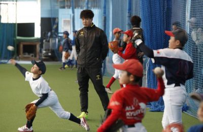 柳投手ら熱心に指導 プロ野球県人会が教室