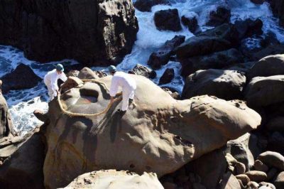 【師走点描】運玉投げの的、亀石しめ縄張り替え 鵜戸神宮