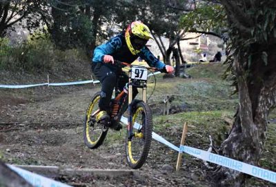 急斜面をマウンテンバイク疾走 国富でダウンヒル国内大会