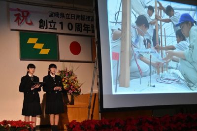 2019/12/10地域の話題日南市・日南振徳高(奥村昌美校長、562人)の創立10周年記念式典は7日、同校体育館であった。全校生徒や歴代校長、教員と来賓68人が参列。地元産業界に貢献できる人材育成に向けて決意を新たにした。 奥村校長が「農工商業、福祉の産業が...