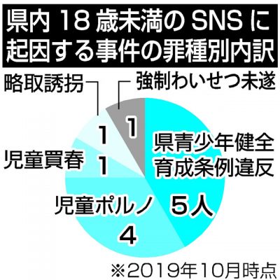 2019/11/27県内一般ニュース大阪市で行方不明になった小学6年の女児が栃木県で保護され、未成年者誘拐と監禁の容疑で男が逮捕された事件は、会員制交流サイト(SNS)が発端となった。県内では今年(10月末現在)、18歳未満の12人がSNSをきっかけに犯罪に巻き込まれ、被害...