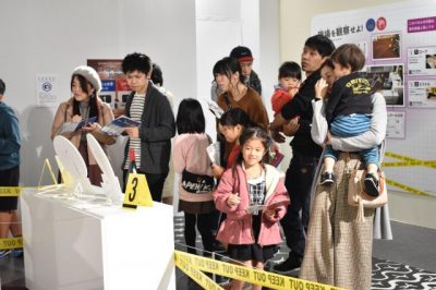 証拠集め謎解き挑戦 コナン展 家族連れら初日盛況