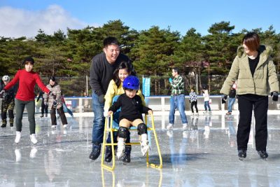 銀盤初滑り 気分爽快! えびの高原スケート場オープン