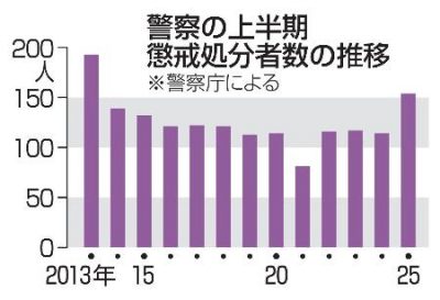 警察官の懲戒処分154人 上半期、昨年から40人増