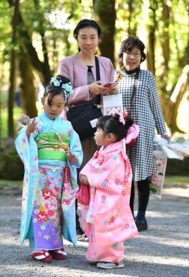 七五三晴れ着姿に目尻下げ 県内神社にぎわう