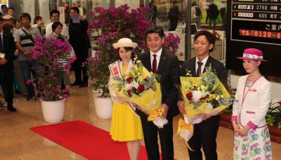 2019/11/01県内一般ニュース3年連続でプロ野球日本一に輝いた福岡ソフトバンクホークスの工藤公康監督や選手らが31日、宮崎市生目の杜運動公園で行う秋季キャンプのため本県入りした。宮崎ブーゲンビリア空港で歓迎セレモニーがあり、ファンら約100人が出迎えた。 歓迎...