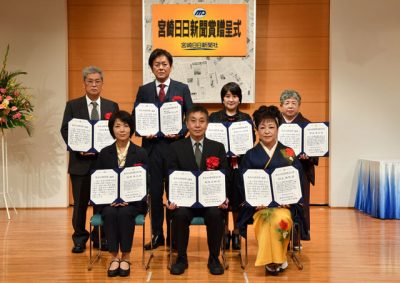 2019/11/01県内一般ニュース本県関係の各分野で優れた功績を挙げ、地域社会に貢献した個人や団体を表彰する第55回宮崎日日新聞賞の贈呈式は31日、宮崎市の宮日会館で開いた。本年度は科学、文化、教育、産業、社会、国際交流の6部門で受賞した4個人3団体をたたえた。 ...
