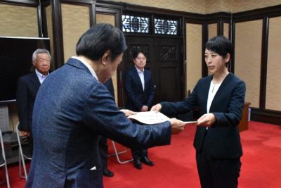2025/07/23県内一般ニュース参院選宮崎選挙区(改選数1)で初当選した立憲民主党新人の山内佳菜子氏(44)の当選証書付与式は22日、県庁であった=写真。 県選管の成合修委員長が当選証書を手渡し「県民から信託を得た代表として、存分に活躍することを祈っている」と祝...
