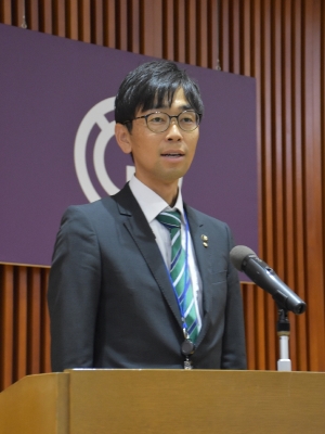 2025/07/23県内一般ニュース延岡市長選(20日投開票)で初当選した三浦久知市長(42)は22日、市役所に初登庁し、市長就任式に臨んだ=写真。 午前9時に三浦市長が正面玄関前に到着すると、大勢の職員が大きな拍手で出迎え、職員代表から花束が贈られた。講堂で開かれ...