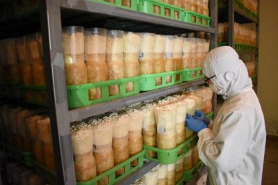 種菌づくり培養液で 加藤えのき(宮崎市)