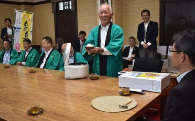 えびの新米、知事表敬しPR 長江川白濁で2季ぶり出荷
