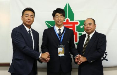 武藤「イチロー超えたい」 都城東高・楽天が指名あいさつ