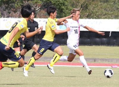 2019/10/14一般スポーツサッカーの第21回日本フットボールリーグ(JFL)第23節第2日は13日、各地で4試合を行った。5位のテゲバジャーロ宮崎は、宮崎市生目の杜運動公園陸上競技場で最下位の松江シティ(島根)に0―1で敗れ、3試合ぶりの黒星となった。 テゲバ...