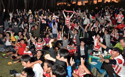 2019/10/14県内一般ニュースラグビー・ワールドカップ(W杯)日本大会で、日本代表が初のベスト8入りを果たした13日、強化合宿地となった宮崎市のフェニックス・シーガイア・リゾートで開かれたパブリックビューイング(PV、県、宮崎市など主催)では千人超(主催者発表)のファ...