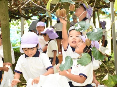 2019/10/08トピックnews都城市の「関之尾緑の村観光農園」(谷口三義園主)の今季営業が7日始まり、地元の園児がキウイフルーツ狩りを楽しんだ。 開園以来、30年ほど毎年招待し、今回は清涼幼稚園(大河内隆之園長)の年長児26人が訪れた。谷口園主(62)は「採っ...