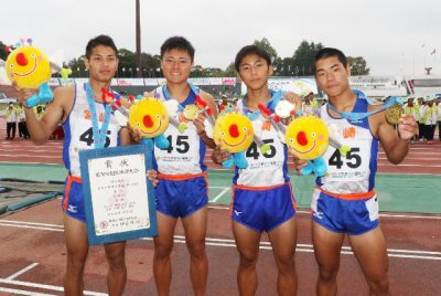 陸上成年少年男子共通400リレーで本県選抜V 茨城国体