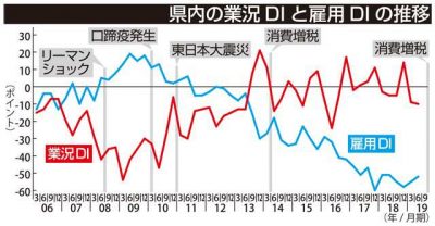 2019/09/14県内一般ニュース消費増税前に県内で駆け込み需要が限定的な理由について、専門家は税率が8%に上がった前回2014年との景気動向の違いや、人手不足なども挙げる。 前回はリーマンショックや口蹄疫、東日本大震災の後に実施。みやぎん経済研究所によると、県内...