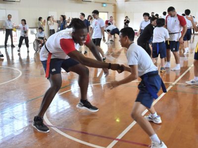 ラグビーイングランド代表チームと特別支援学校生徒ら交流