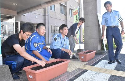 交通安全のシンボルに 西都署「遺児のヒマワリ」種植える