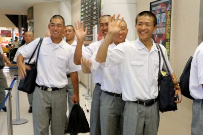 2019/08/02きょうの出来事第101回全国高校野球選手権大会(6日開幕、甲子園球場)に初出場する富島の出発式は2日、宮崎市の宮崎ブーゲンビリア空港であった。濵田登監督やベンチ入りメンバーら約30人が関係者から激励を受け、空路で大阪入りした。 式典では、県高野...