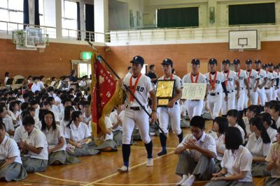 「一つでも多く勝つ」 富島野球部壮行会