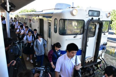 日常戻り通学生ら笑顔 吉都線運行再開