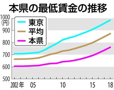 最低賃金引き上げへ 県内労働者期待、使用者懸念