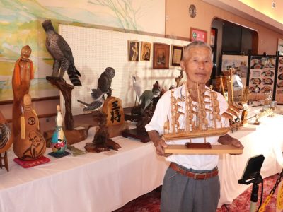 2025/07/19地域の話題精巧な竹細工の帆船や、今にも飛び立ちそうなバードカービング―。都城市山田町の温泉施設「かかしの里ゆぽっぽ」のロビーで、近くの戸越正治さん(81)による多彩な作品展が開かれている。21日まで。 戸越さんは、旧国鉄勤務時代から50年以...