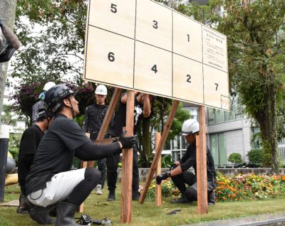2025/06/23社会news7月3日公示、20日投開票が確実視される参院選宮崎選挙区(改選数1)に向け、県内最多の有権者を抱える宮崎市で23日、選挙区候補者ポスターを張る掲示板の設置が始まった=写真。27日までに市内661カ所に設置される。 橘公園市役所前広...