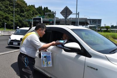 酷暑期の高速道注意して 交通事業者団体が宮崎西ICで啓発