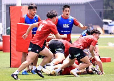 ラグビー日本代表、報道陣へ合宿公開 竹内、メイン選手も汗