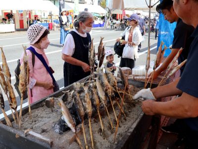 県北地域の特産品を一堂に 延岡市でのぼりざるフェスタ開幕