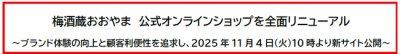 梅酒蔵おおやま 公式オンラインショップを全面リニューアル~ブランド体験の向上と顧客利便性を追求し、2025年11月4日(火)10時より新サイト公開~