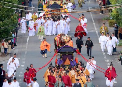 2025/11/01トピックnews「神武さま」の愛称で親しまれる宮崎神宮大祭(同神宮御神幸祭奉賛会主催)は1日、宮崎市で始まった。御神幸ごしんこう・神賑しんしん行列の往路には古代衣装などに身を包んだ約1200人が参加。沿道に詰めかけた観客を魅了した。 行列は午後1...