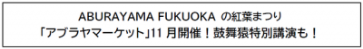ABURAYAMA FUKUOKA の紅葉まつり「アブラヤマーケット」11月開催!鼓舞猿特別講演も!